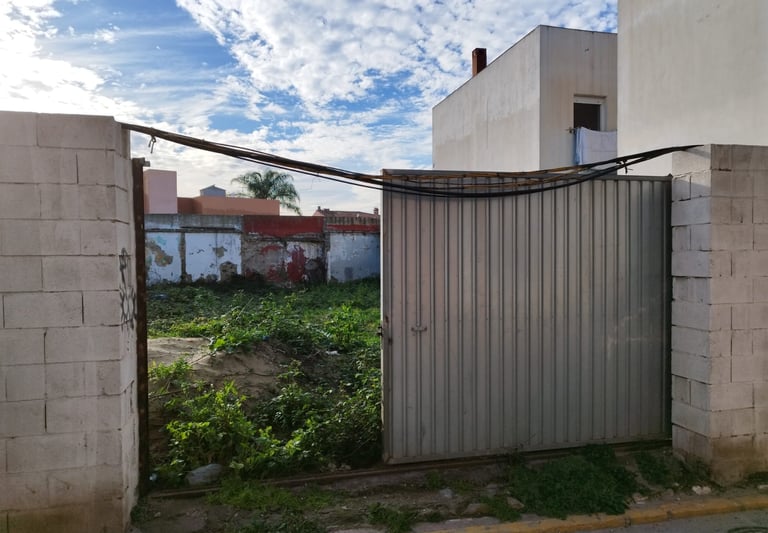 Solar urbano en calle Italia, en la barriada de San Pedro. Con 130 m² de superficie. Solo muralla y puerta, por dentro no hay nada.